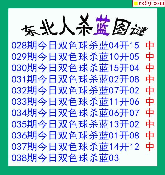 > 东北人杀蓝球038期双色球图谜 10中10